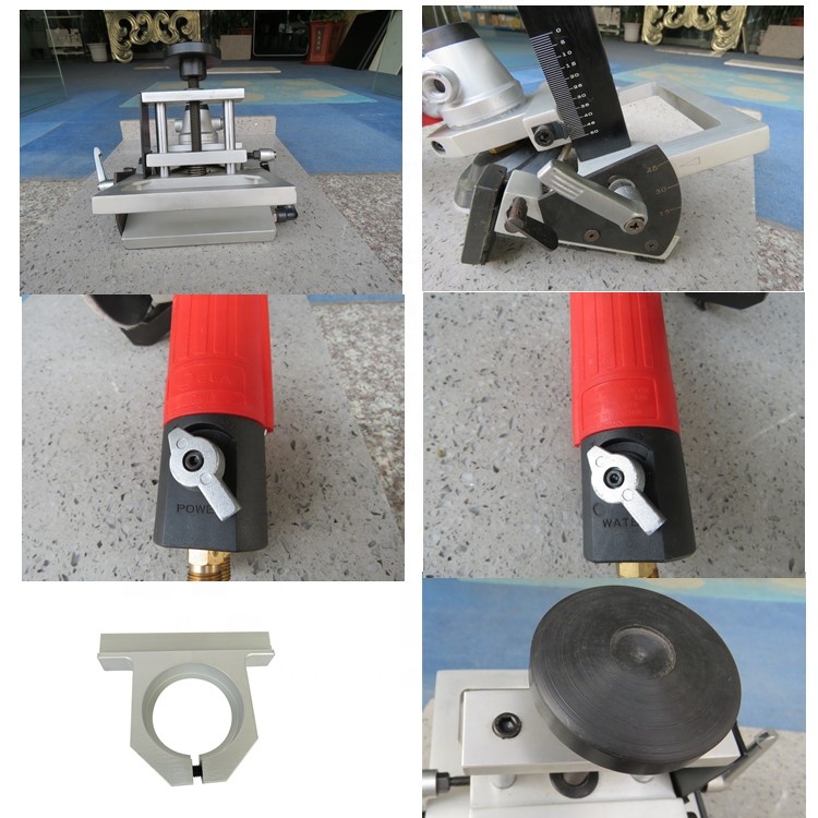 多功能倒角磨邊機架配上氣動水磨機后,可倒角15°-45°和磨90°邊,工具簡單易懂,可隨時替換配