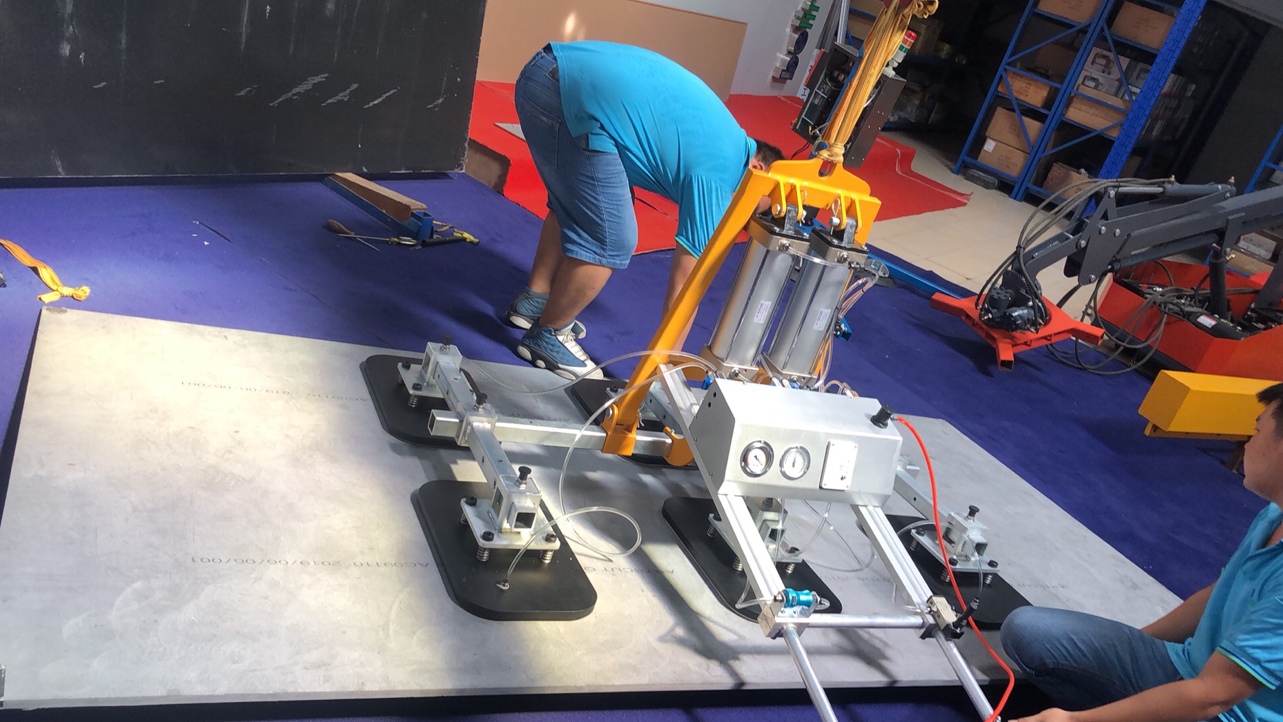 This vacuum lifter is designed to lift smooth or rough marble and granite slabs. Pneumatic vertical-horizontal tilting 0 to 90°.
